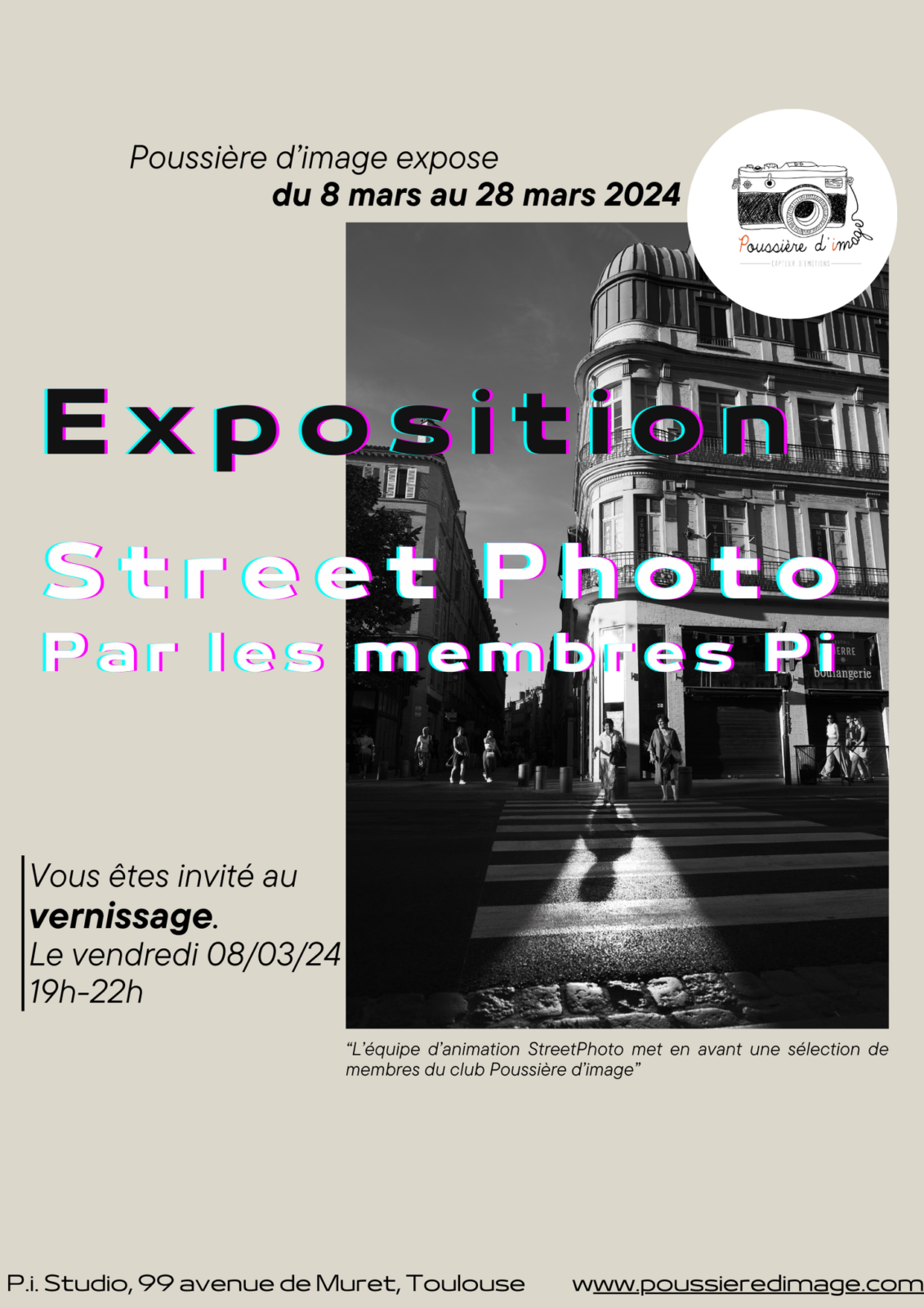 Cette exposition qui nous tient à cœur se veut comme un hommage à la photo de rue, faite en interne, par et pour les membres de Poussière d’Image. Nous sommes fiers de vous la présenter et nous vous attendons nombreux le vendredi 8 mars dès 19h au sein du studio de Poussière d’Image !